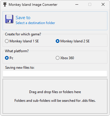 A program that allows you to convert .DDS images back into the .DXT format used in Monkey Island 1 Special Edition and Monkey Island 2 Special Edition.